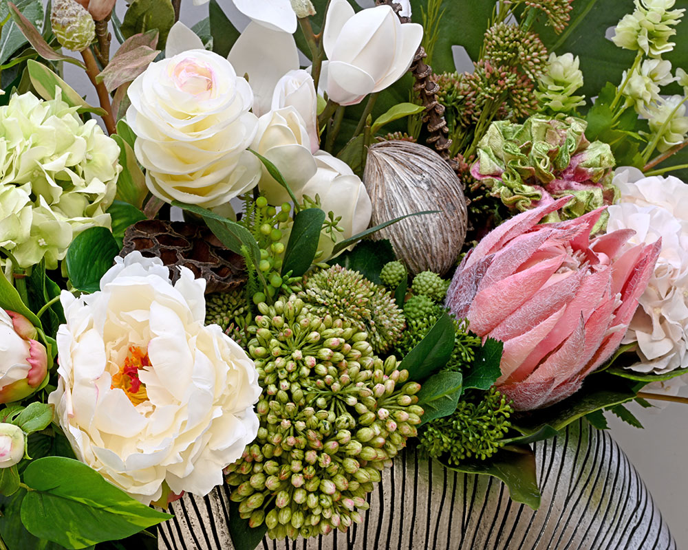 Our artificial flower selection is truly expansive — with over 8,000 individual blooms representing more than 600 varieties of flowers and plants in a stunning range of colours, shapes, and sizes. Paired with over 300 styles of containers to choose from, the design possibilities are endless.