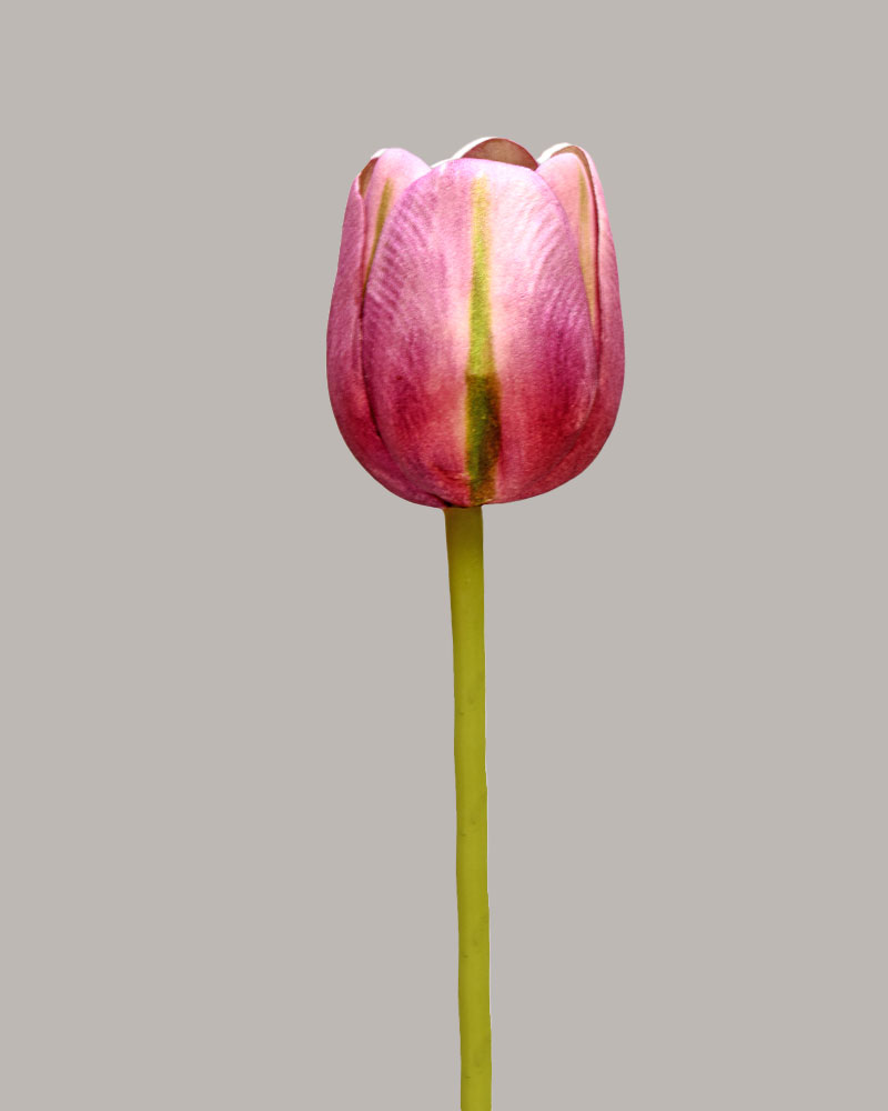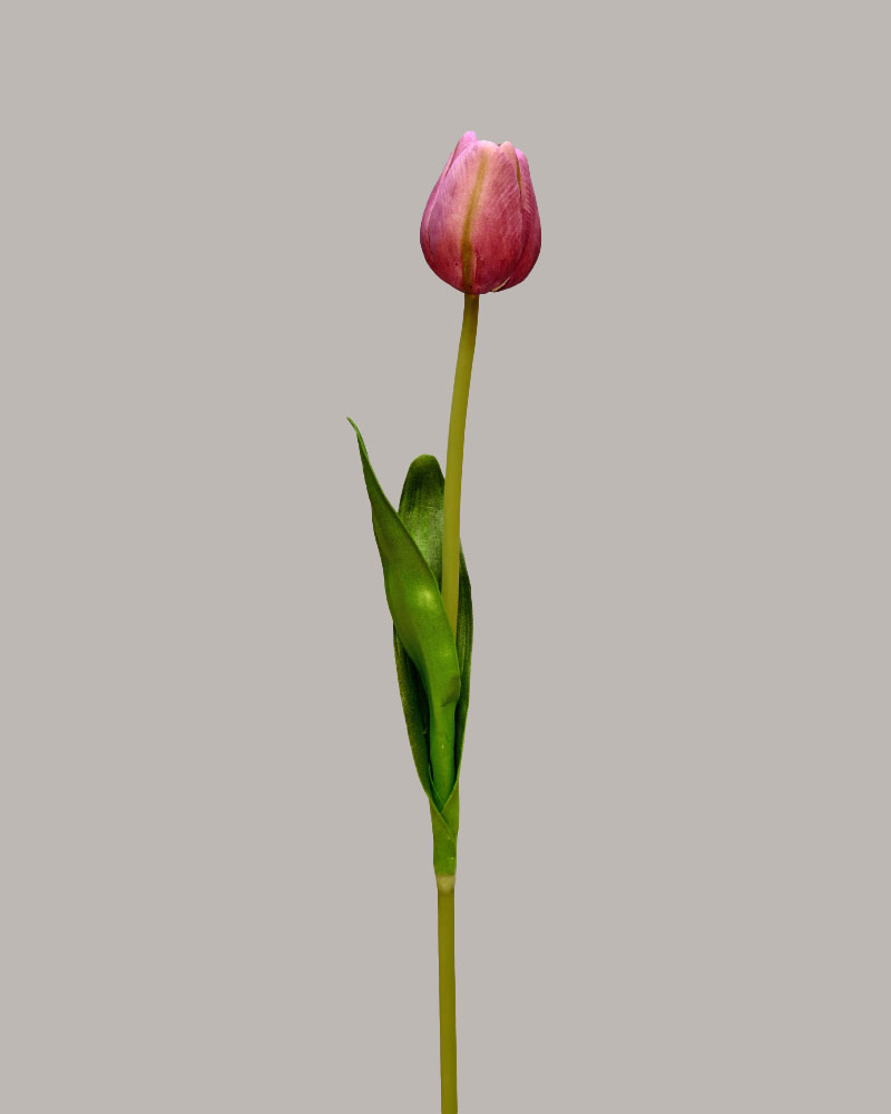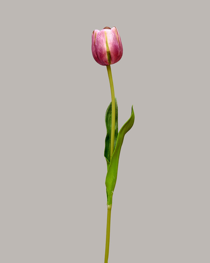 Few flowers symbolize spring like tulips. This stem features rich deep purple petals accented with fresh green hues, and a bloom starting to open, adding a bold and elegant splash of colour. Perfect on their own or paired with other favourites, they bring fresh, natural beauty to any arrangement or space.