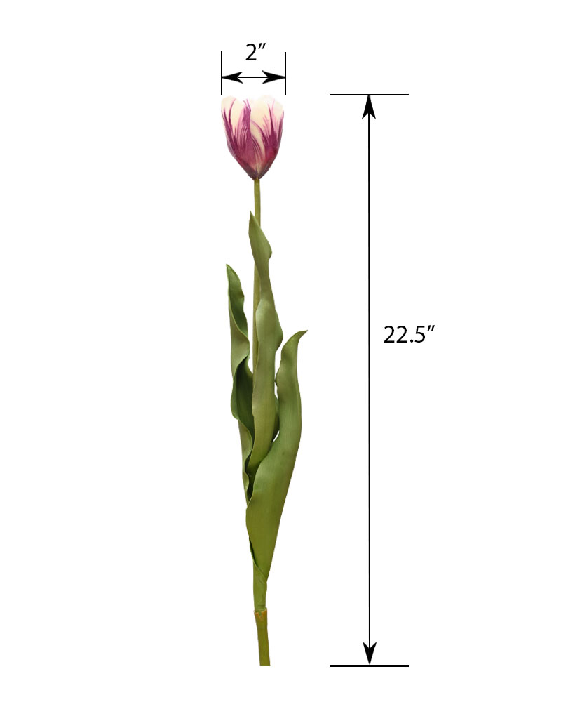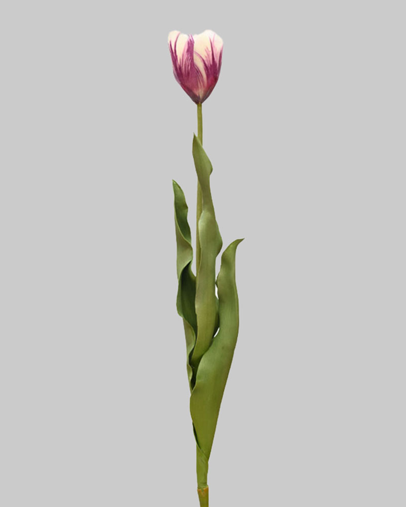 Tulips are a true symbol of spring, bringing fresh life and colour indoors. This open tulip bud features striking deep purple petals accented with crisp white, and a graceful, organic form that adds a natural touch to any vase or arrangement. Its bold yet elegant presence makes it perfect for adding a touch of drama to garden-inspired designs.