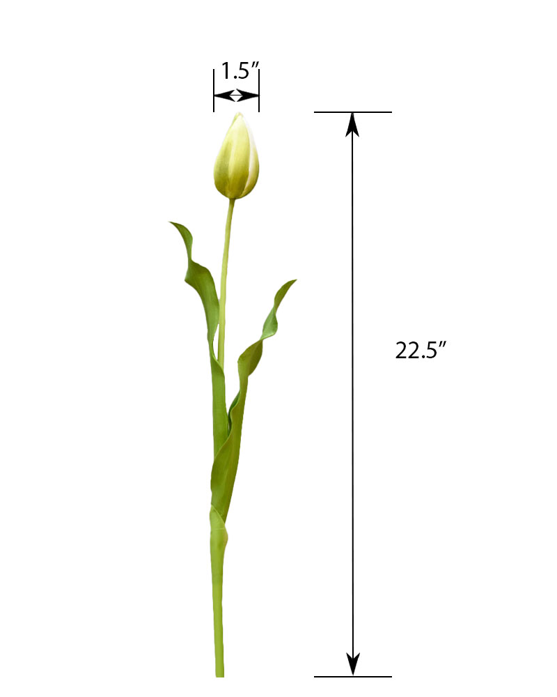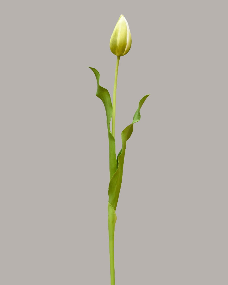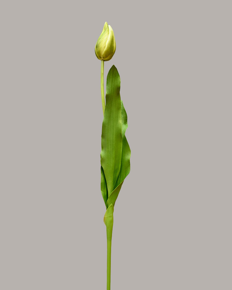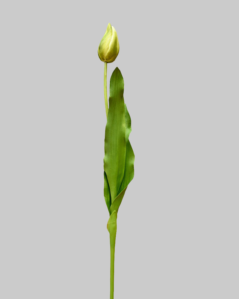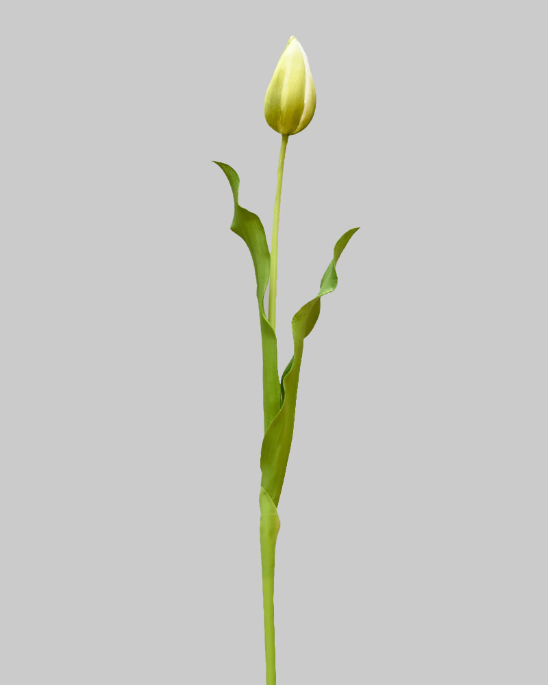 Tulips are a true symbol of spring, bringing fresh life and colour after winter’s rest. This closed Dutch Tulip features soft green petals accented with delicate white tones, perched atop a long green stem. Its subtle colouring and elegant form add a natural, calming touch to any arrangement or vase—perfect for creating a fresh, garden-inspired look indoors.