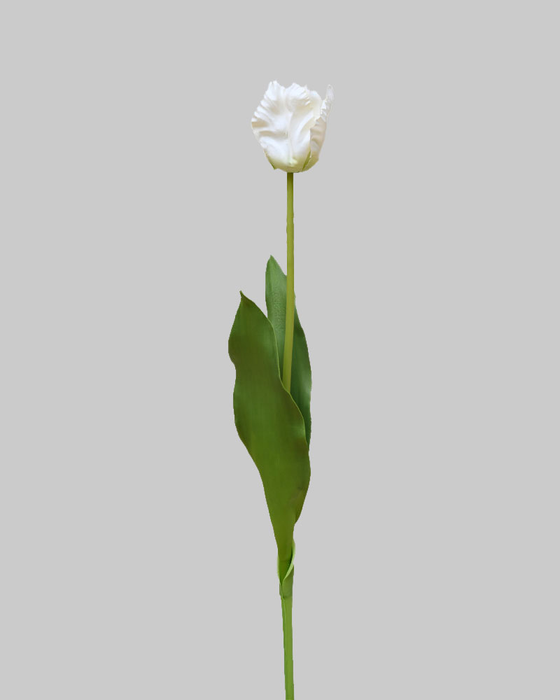 Few flowers are more symbolic of spring than tulips! With stunning blooms atop long green stems, they remind us of life returning to the garden after a long winter’s rest. Whether arranged alone or combined with other spring favourites, these tulips add a splash of colour that brings spring indoors. This Parrot Tulip, a unique variety with distinctive frilly petals, adds style and texture. Its soft white colouring creates a subtle yet elegant look for any vase or container.