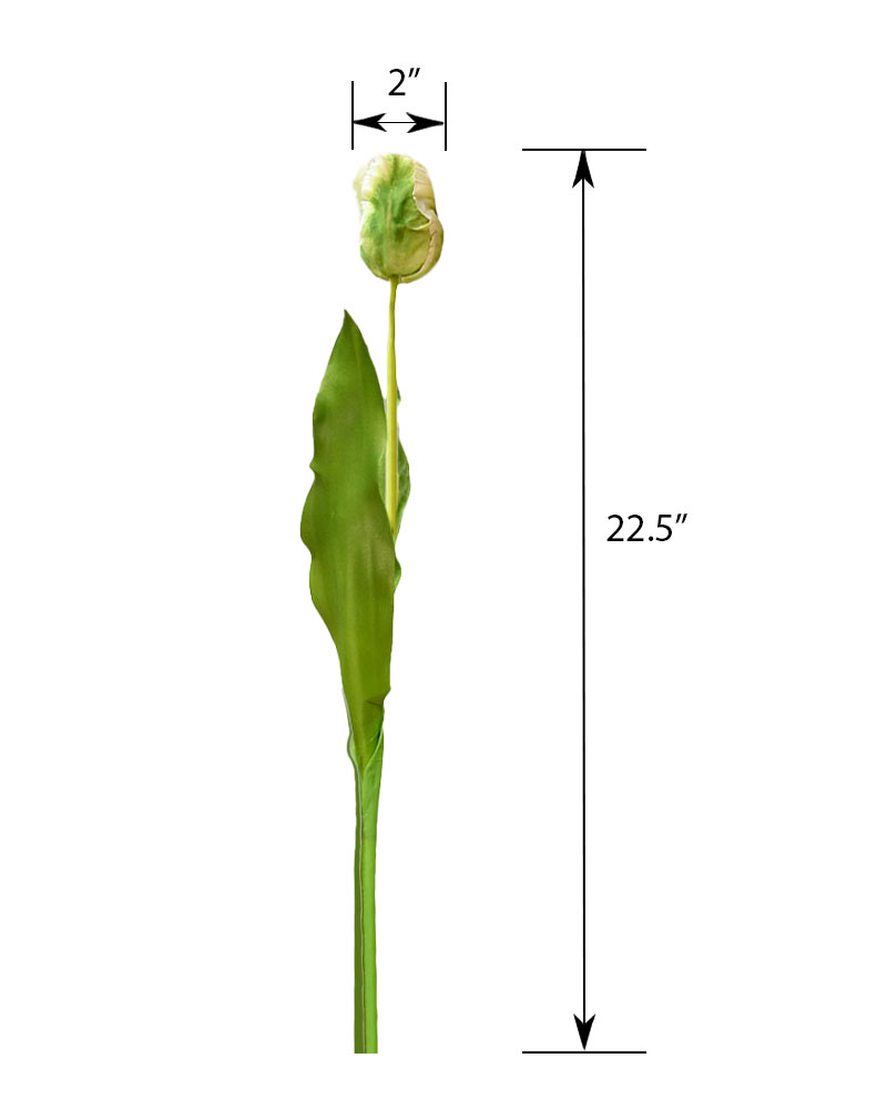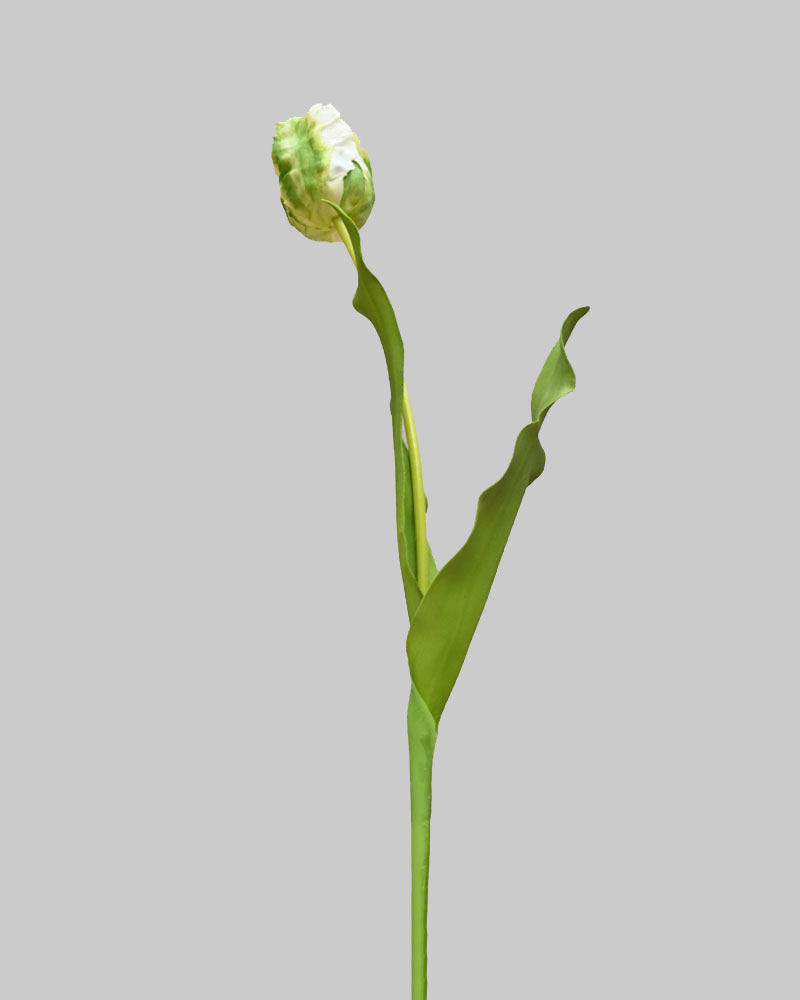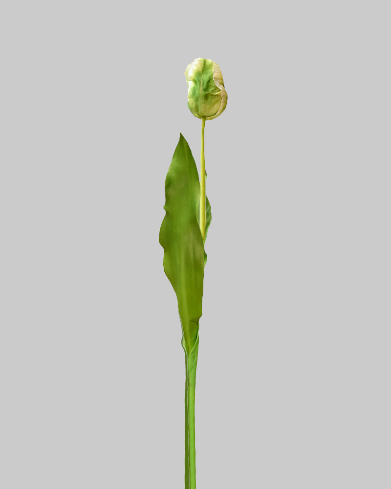 Few flowers are more symbolic of spring than tulips! With stunning blooms atop long green stems, they remind us of life returning to the garden after a long winter’s rest. Whether arranged alone or mixed with other spring favourites, these tulips add a splash of colour that brings spring indoors. This Parrot Tulip bud is a unique variety with distinctive frilly petals that add style and texture. Its soft green and white colouring, combined with a natural touch, creates a subtle yet elegant look for any vase or container.