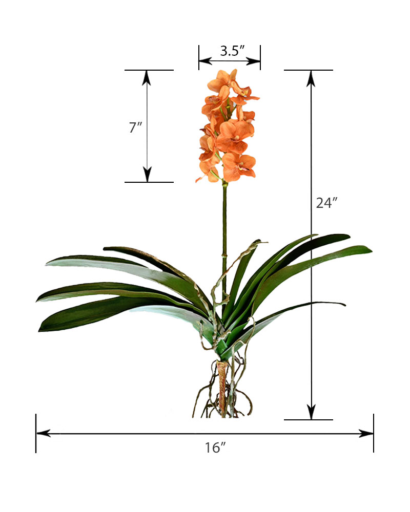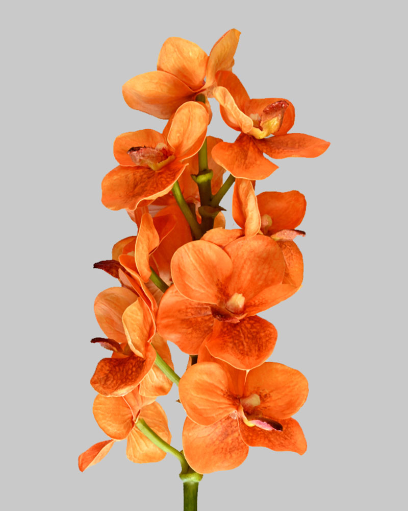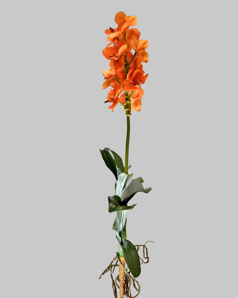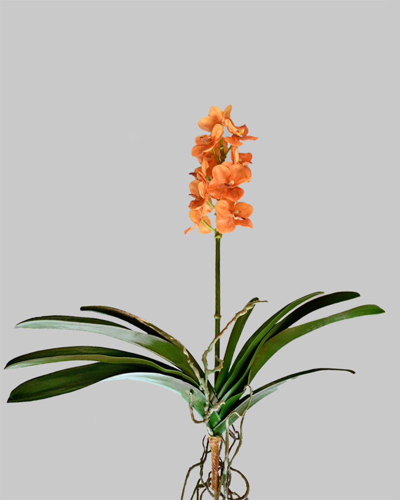 The Vanda Orchid is admired for its long-lasting blooms, elegant form, and distinctive, trailing roots. This artificial stem has been carefully crafted with remarkable attention to detail, creating a lifelike and vibrant display. The vivid orange flowers add a lively burst of colour—perfect for energising a space and adding warmth to any setting. Orchids never disappoint, making them a striking addition to any container or arrangement.
