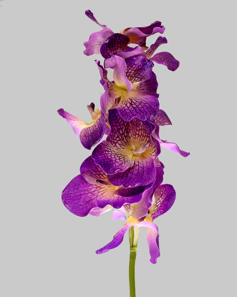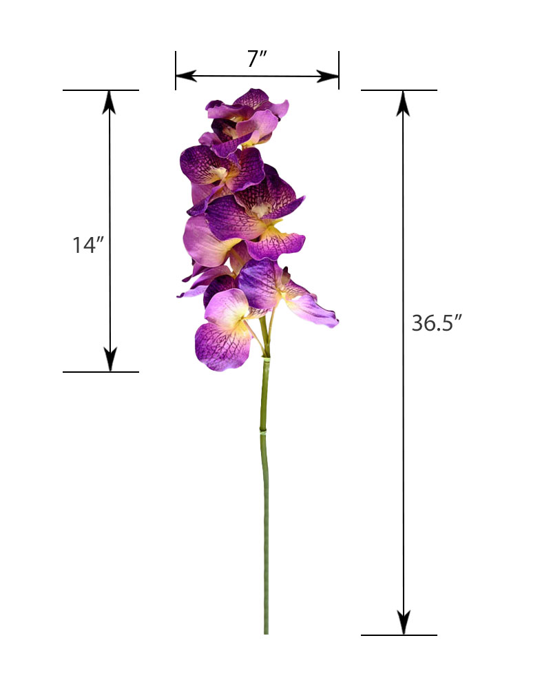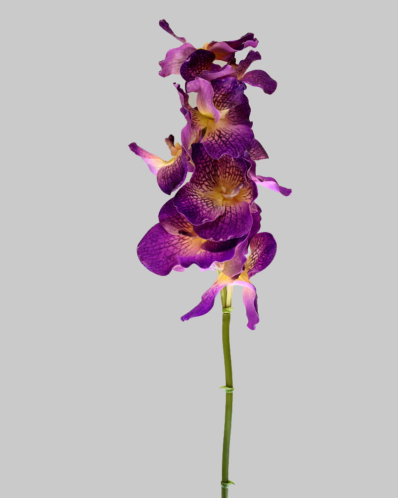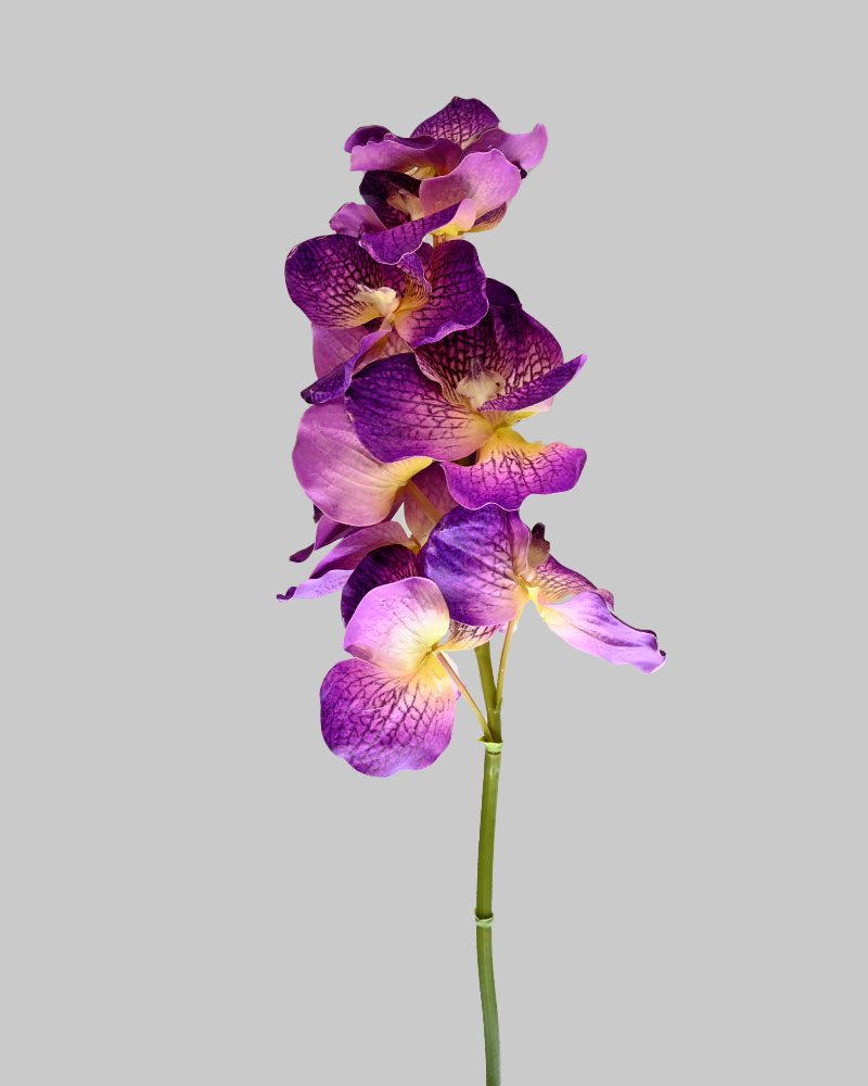 The Vanda Orchid is known for its long-lasting flowers, vivid colours, and graceful, trailing roots. This artificial orchid stem has been crafted with exceptional detail, featuring a long stem for a dramatic visual display and a stunning array of rich purple flowers to complete the look. Orchids never disappoint, making them the perfect addition to any container they’re placed in.