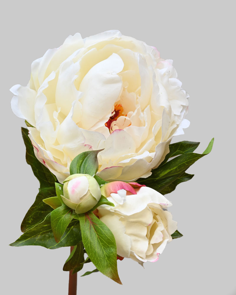 With one stunning main flower and two gently opening buds, this Peony combines colour and style perfectly. Crafted with incredible detail, it not only looks real but feels real too. The warm white petals create a truly spectacular bloom. So lifelike, distinguishing it from real is nearly impossible. Once added to an arrangement, it brings the beauty of nature indoors.