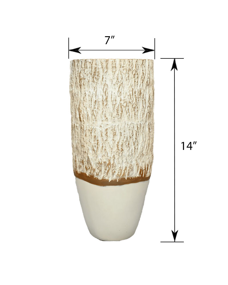 With a smooth white base and a brown and white textured top, this container combines clean simplicity with rustic charm. Its height and visual contrast make it an ideal choice for creating floral arrangements that stand out. Whether you're going for a soft, neutral look or something more bold, this versatile container is ready to deliver a beautiful finishing touch to any space.