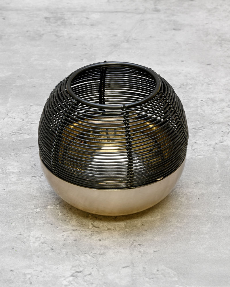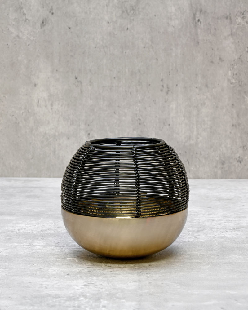 Featuring a gold-brushed base and a black wire top, this tealight holder brings a modern yet elegant touch to any table, shelf, or mantle. Its striking contrast and sleek design make it a standout piece whether displayed on its own or grouped with others. Versatile and stylish, it’s the perfect accent to elevate your décor.